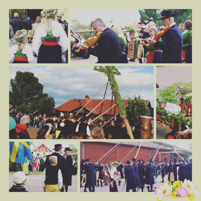 Onze eerste midsommar hier. Zoals de rest van het dorp verzamelden wij ons vanavond bij de meiboom en keken naar alle mensen in klederdracht die liederen zongen en dansten om de boom. En terwijl ik daar zo stond, wat onwennig tussen al die mensen waarvoor deze traditie zo vertrouwd is, dacht ik eraan dat mijn wekker niet meer gaat op deze nacht om twee uur en ook mijn vader slaapt lekker door. Die tijd is voorbij. Nu zijn we hier en doen we mee aan deze zonnewende. De mensen om me heen, lachen, zingen, drinken en zien er stralend en kleurrijk uit. Ik bekijk het van een afstandje en geniet.