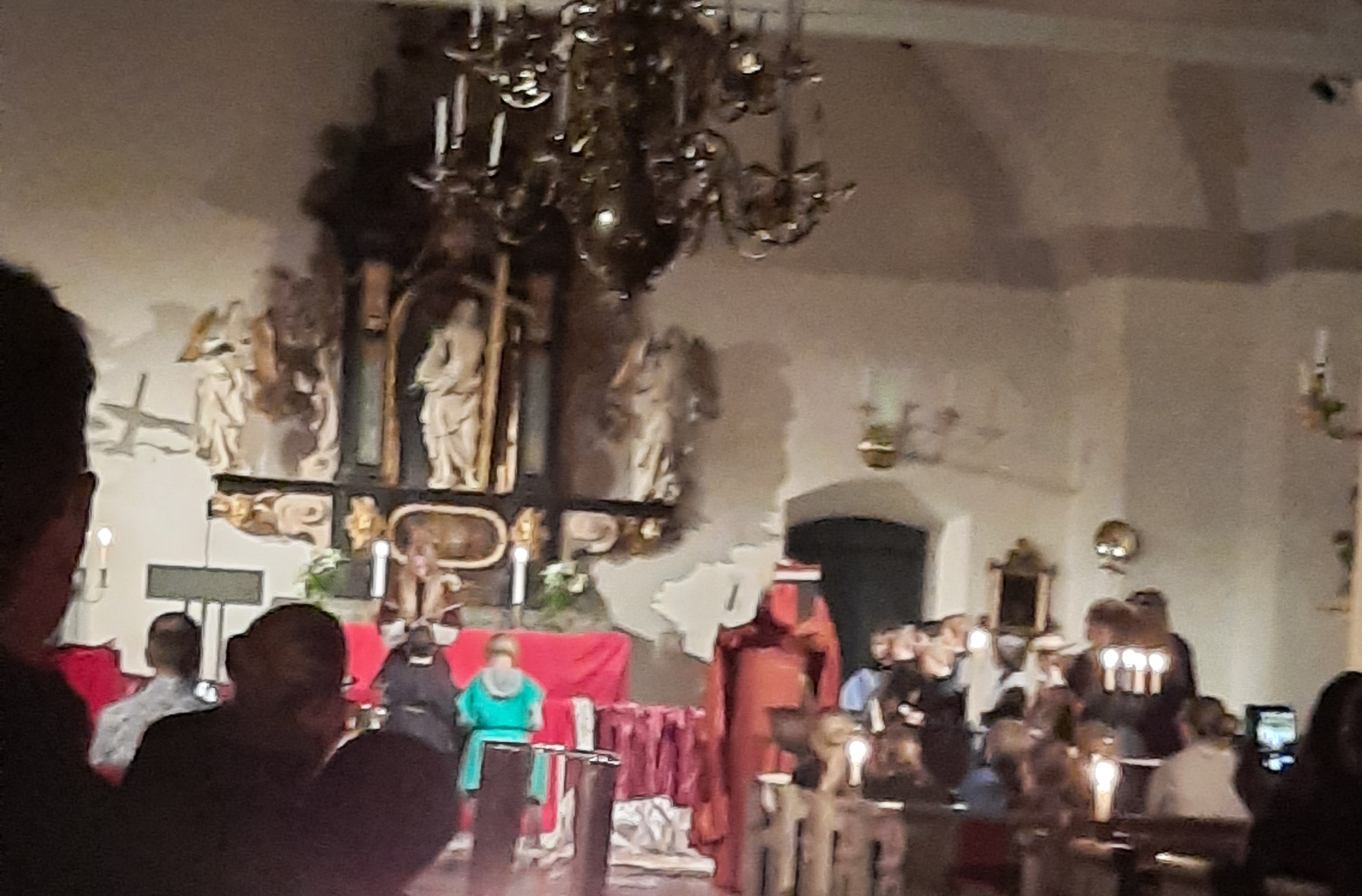 Vanavond was de beurt aan ons kind. Heel serieus en in echte ridderkleding knielde hij voor het altaar en werd hij heel echt geridderd met een echt zwaard. Voor heel even de hoofdrol in zijn eigen jongensboek.